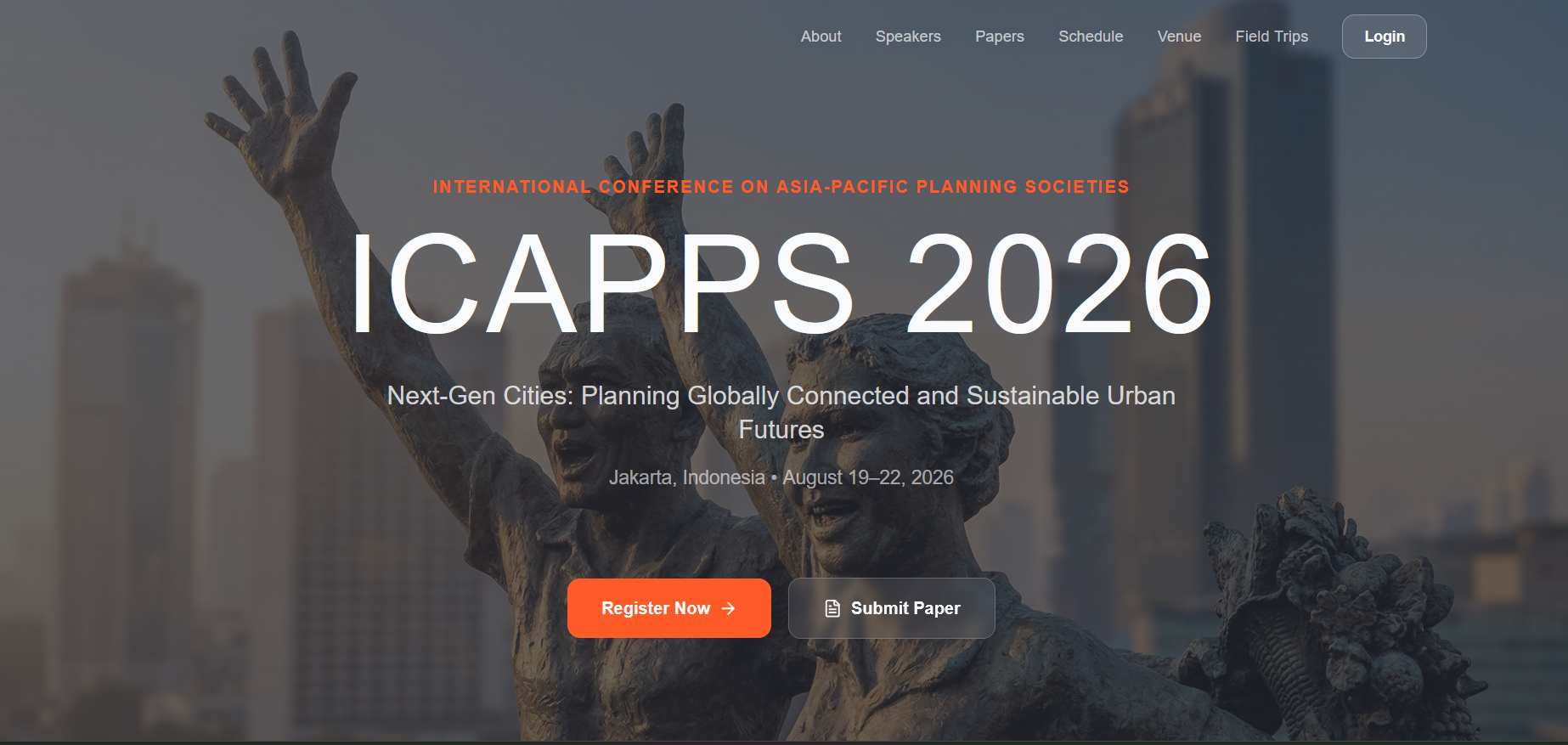 Please click on the link to register: https://icapps2026jakarta.id/ About the Conference The International Conference on Asia-Pacific Planning Societies (ICAPPS) 2026 brings together leading urban planners, researchers, policymakers, and practitioners from across the Asia-Pacific region...