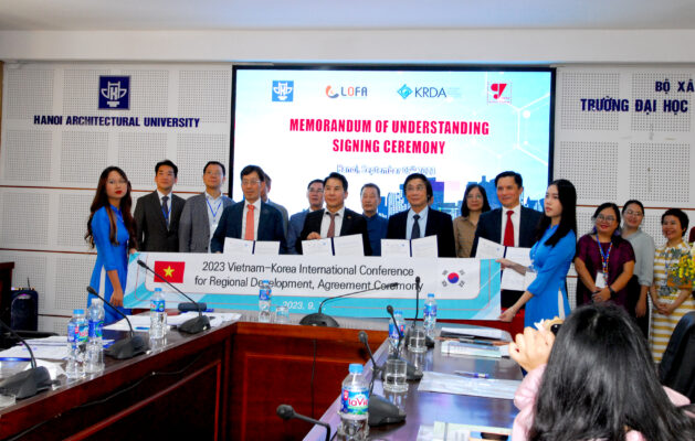 On September 7, 2023, at Hanoi Architectural University, Memorandum of Understanding on “Establishment of a cooperation network” was signed between the Vietnam Urban Planning and Development Association (VUPDA), Hanoi Architectural University (HAU), Korean Regional Development Association (KRDA) and Korea Local Finance Association (LOFA).